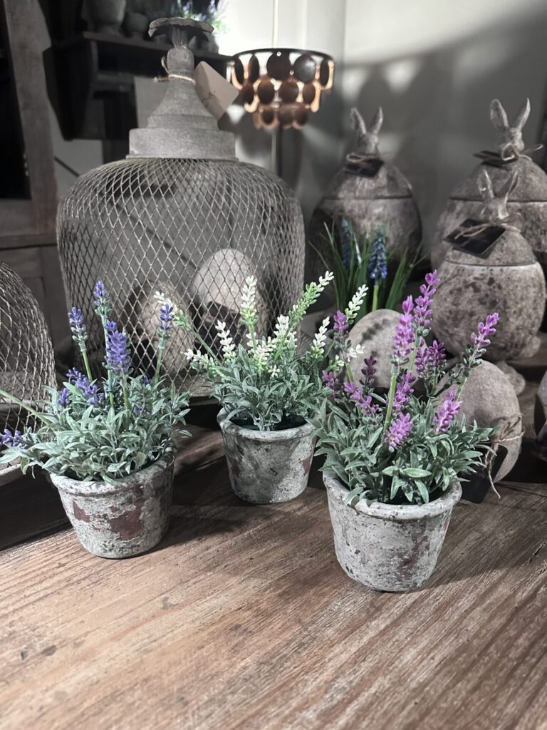 Kunst lavendel in stenen pot
