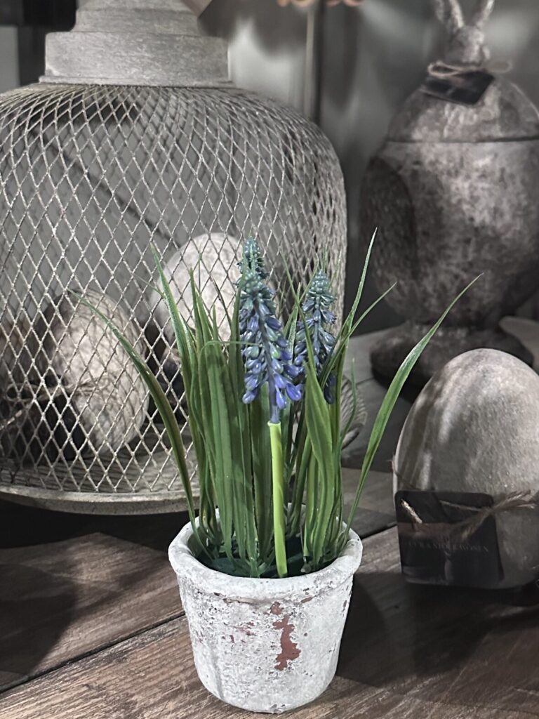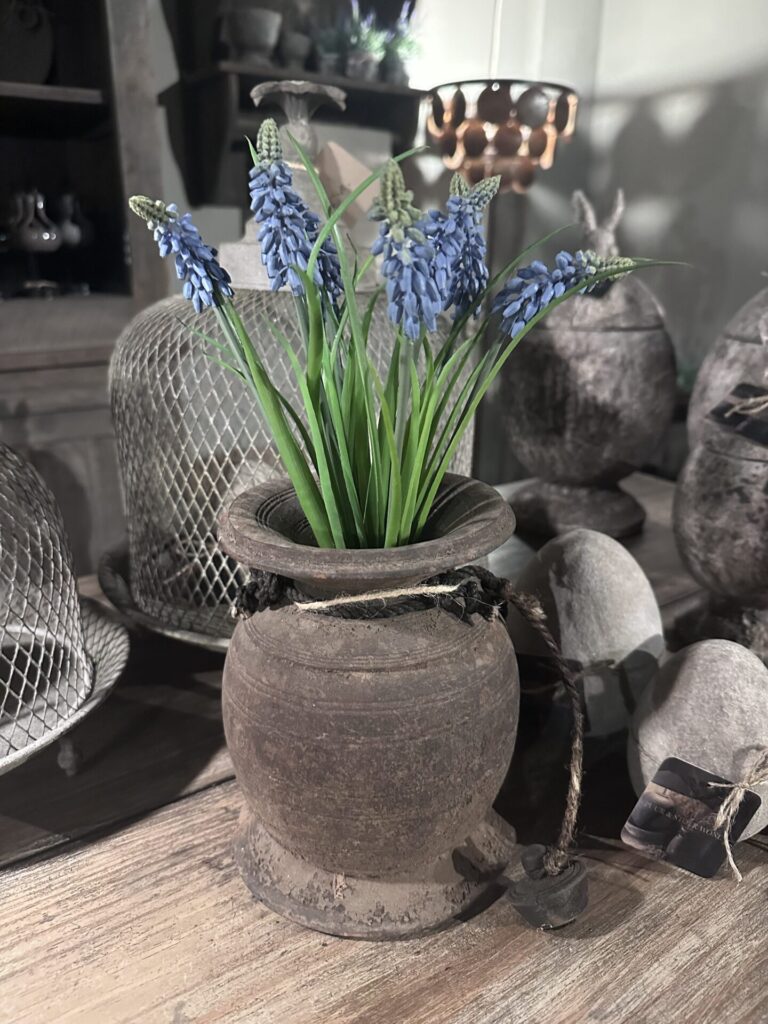 Kunst blauwe druif in stenen potje