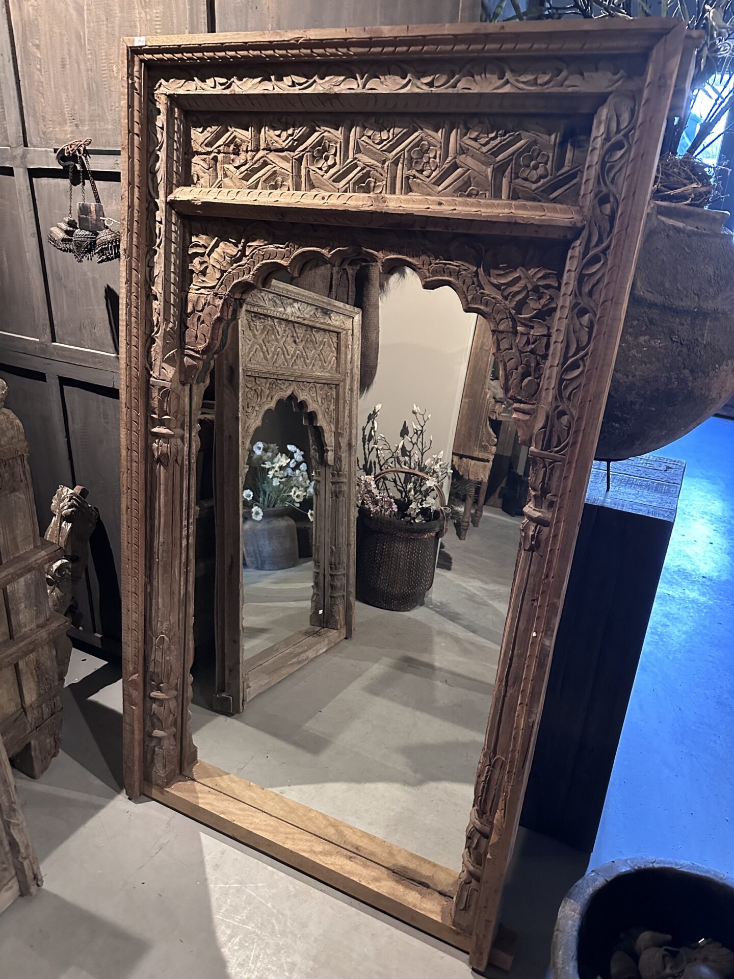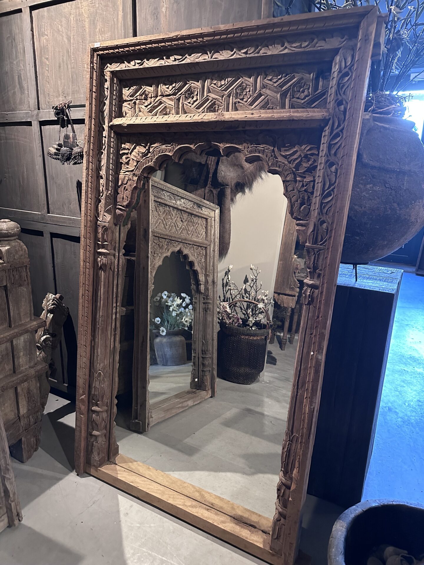 Authentieke Indiase Spiegel – Handgesneden Hout – 88×151 cm