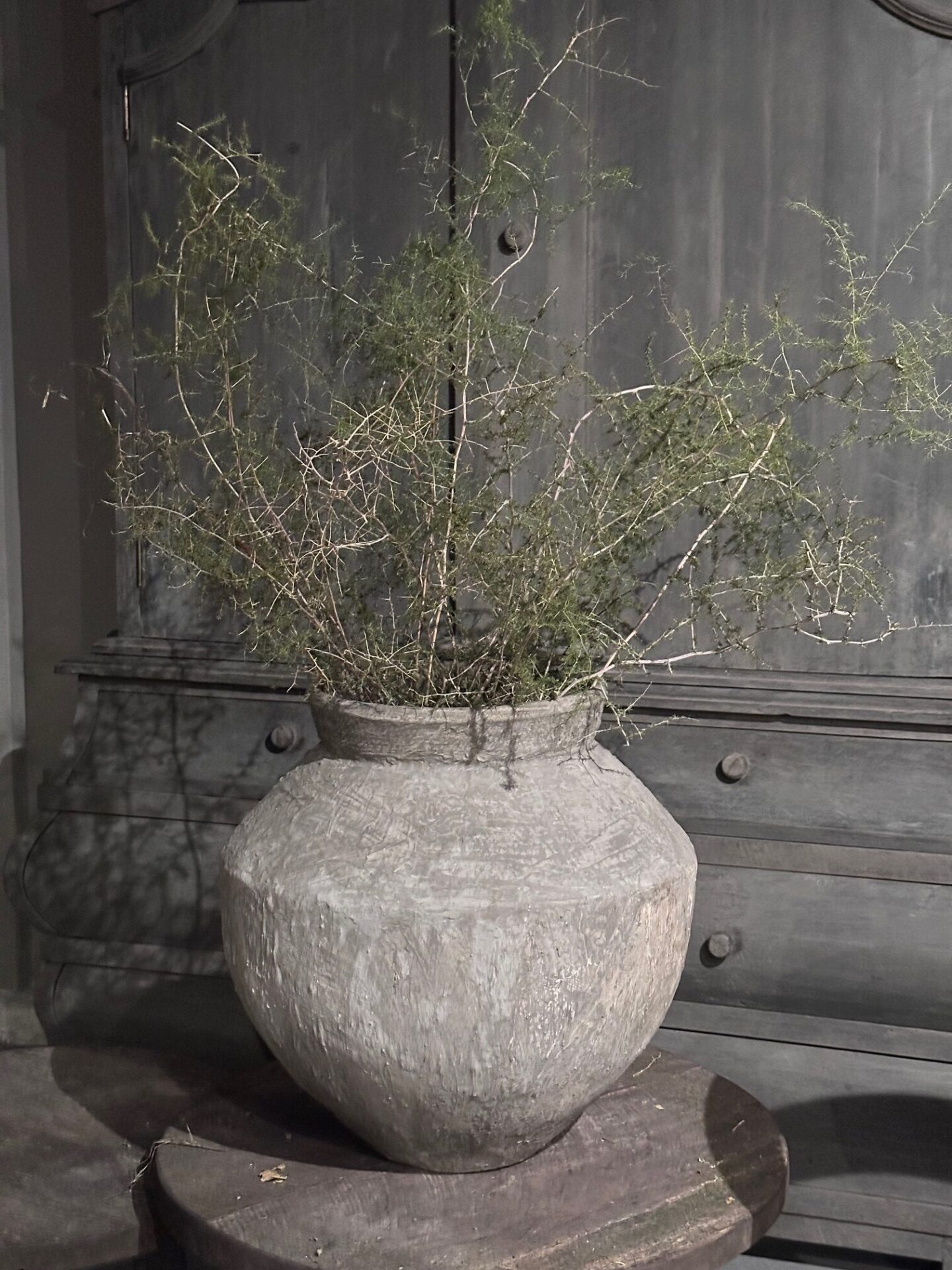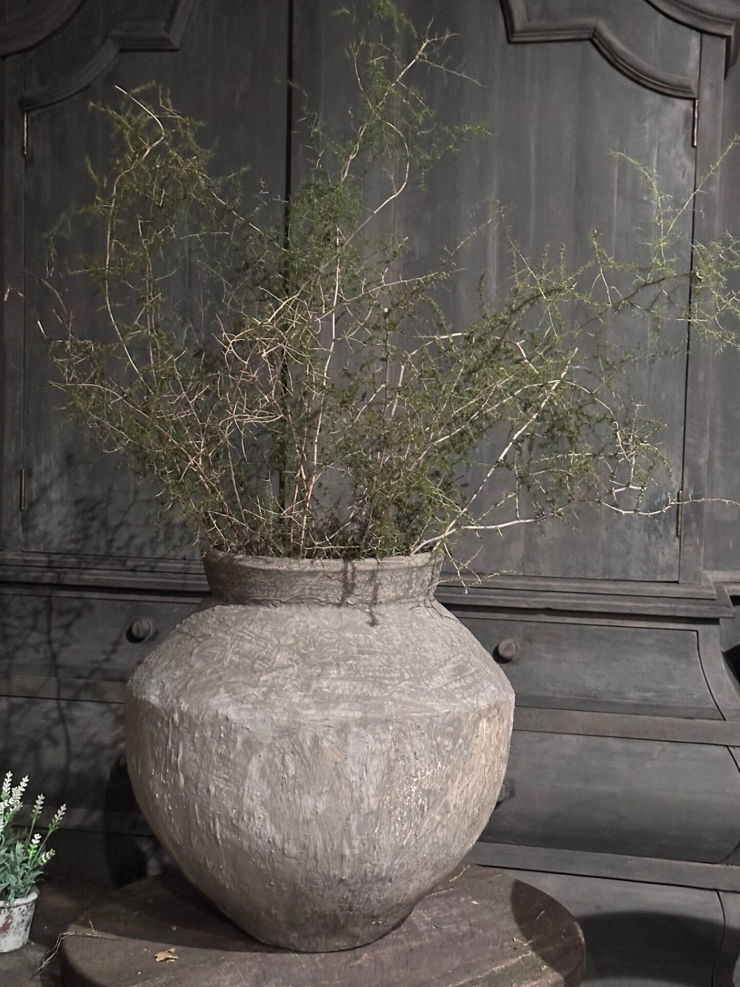 Of je nu houdt van een landelijke woonstijl, een sober en stoer interieur, of de Japanse Wabi-Sabi esthetiek; deze stenen pot past overal. De ruwe textuur en de natuurlijke grijstinten maken het de ideale basis voor een decoratie met droogtakken, zoals een grillige magnoliatak of een fijne Asparagus.