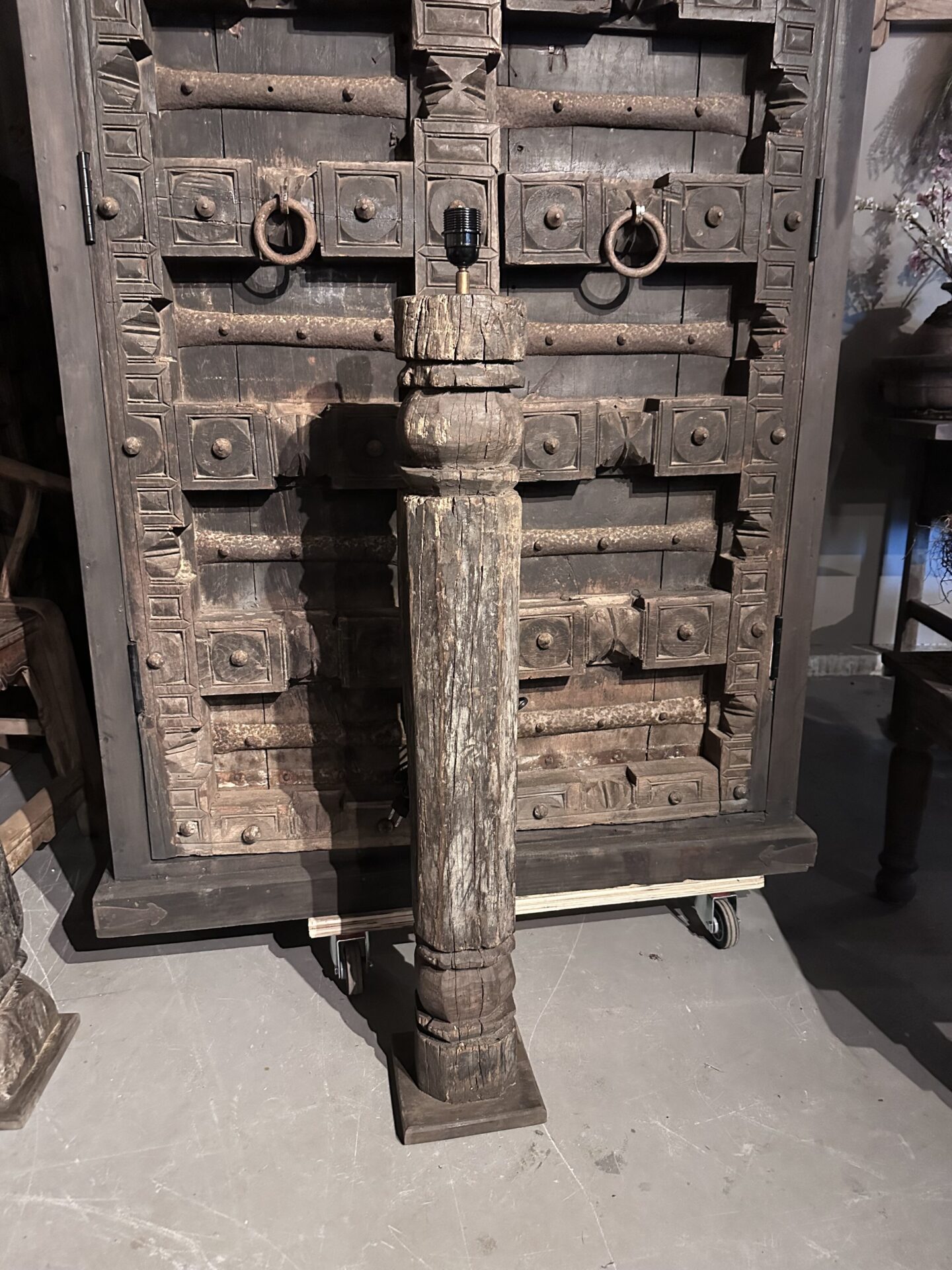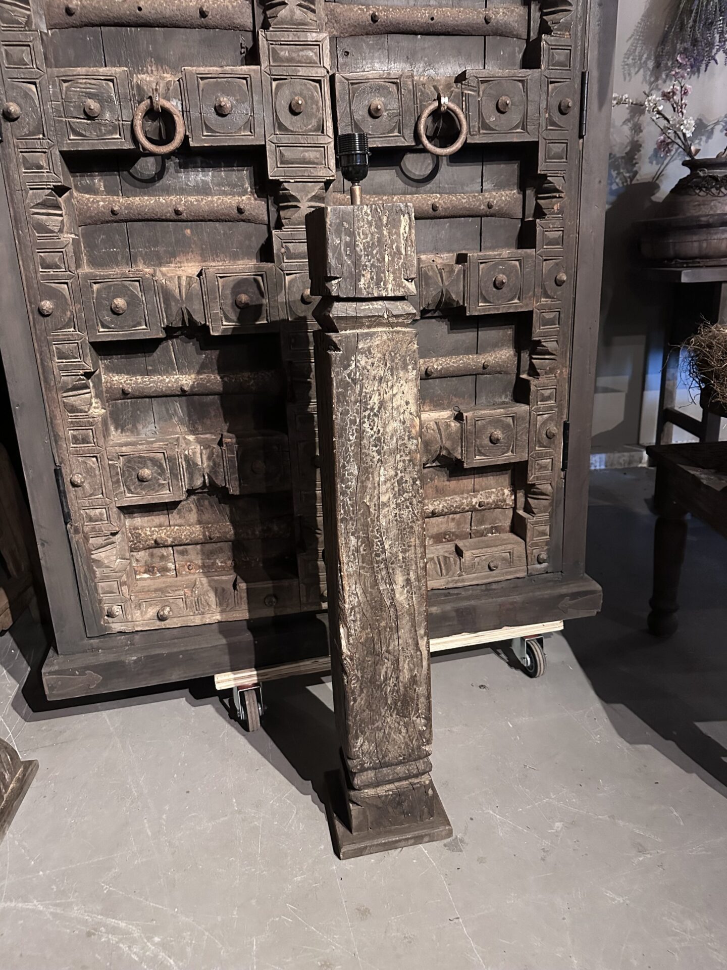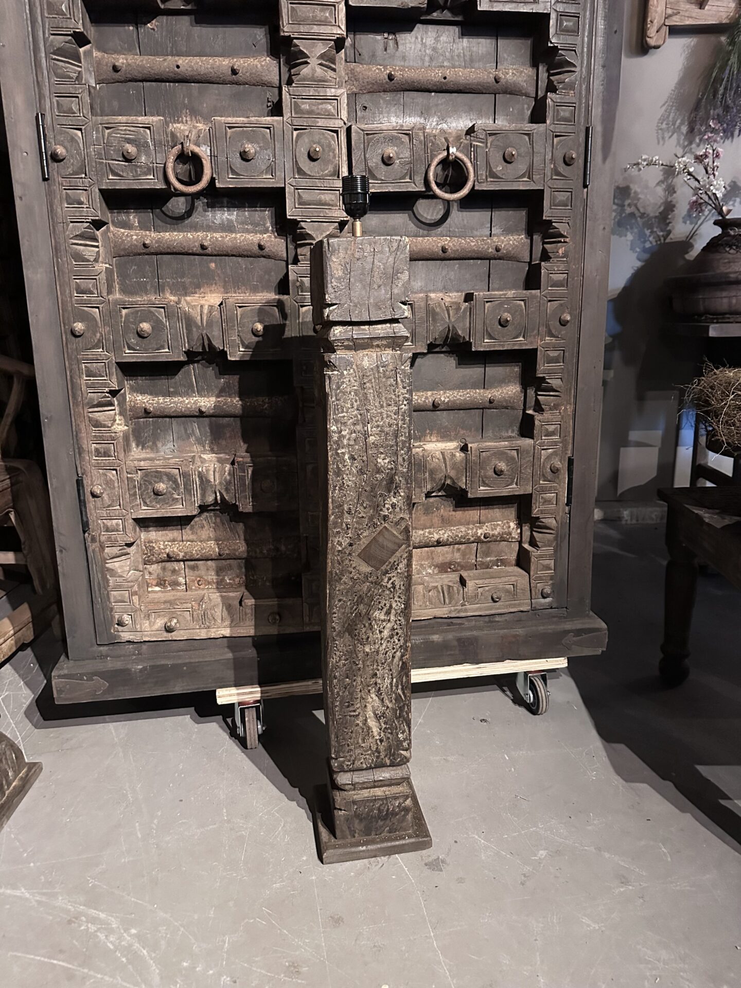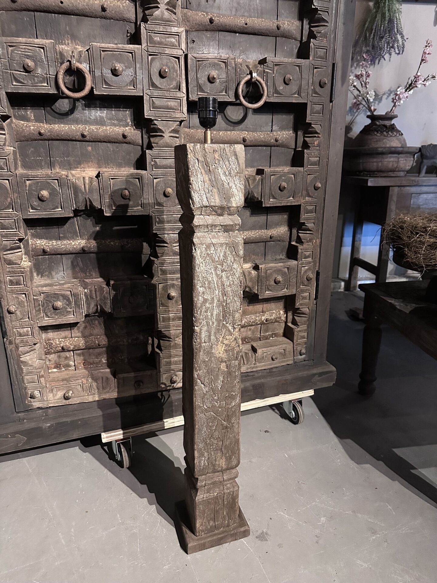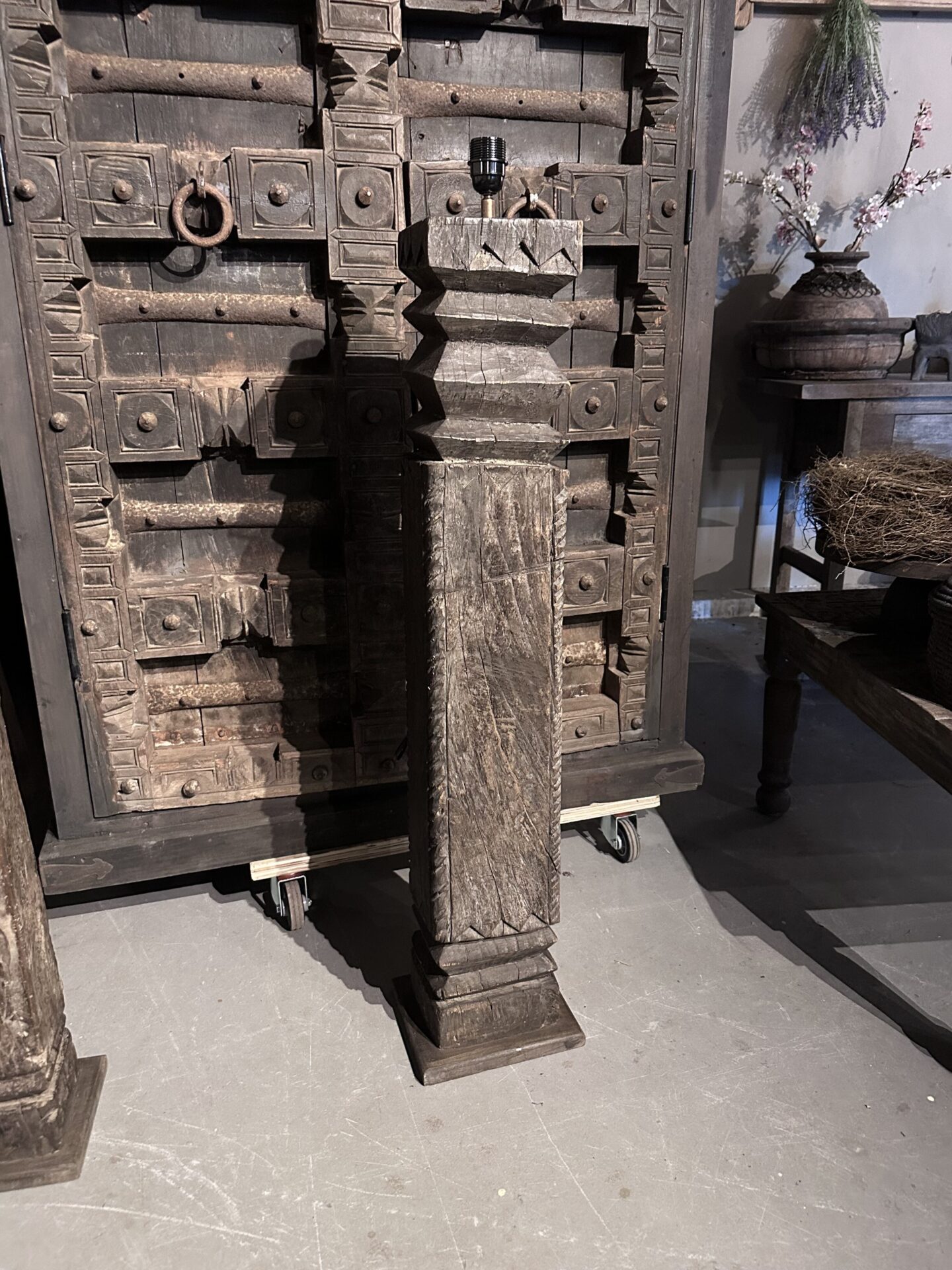 Exclusieve Vloerlamp: Authentieke Oude Pilaar uit IndiaExclusieve Vloerlamp: Authentieke Oude Pilaar uit India