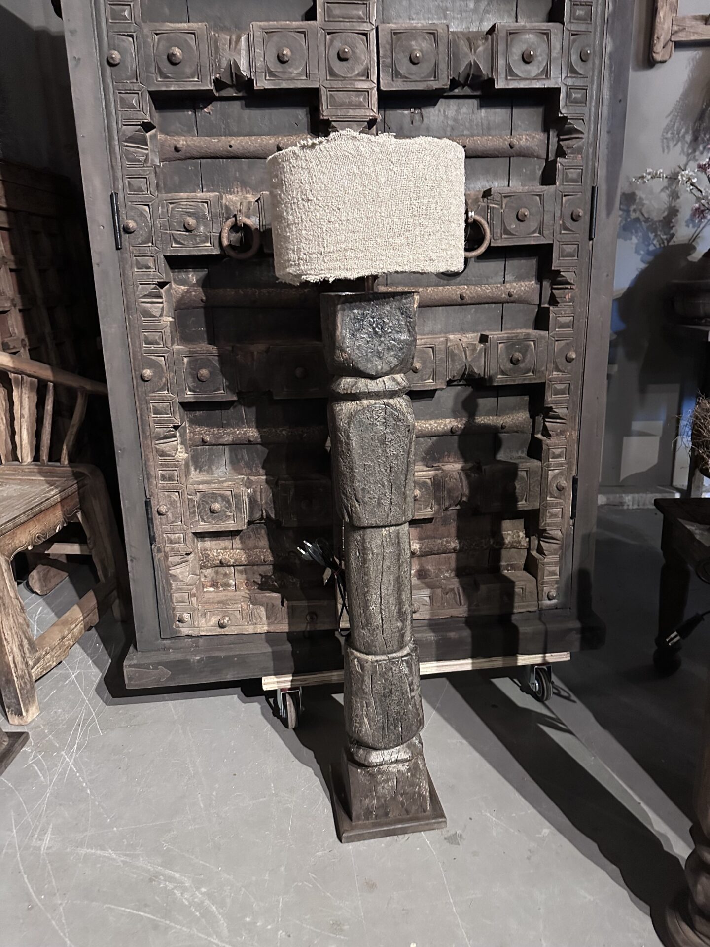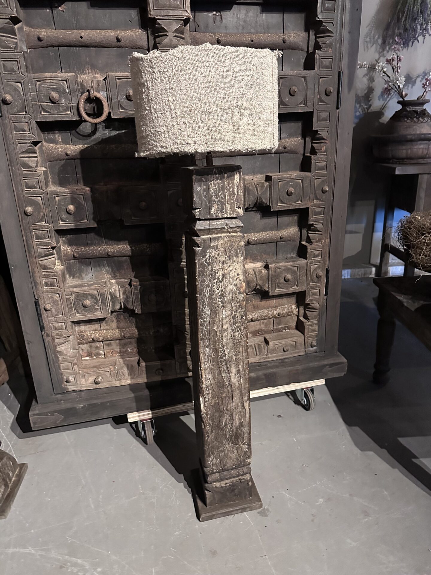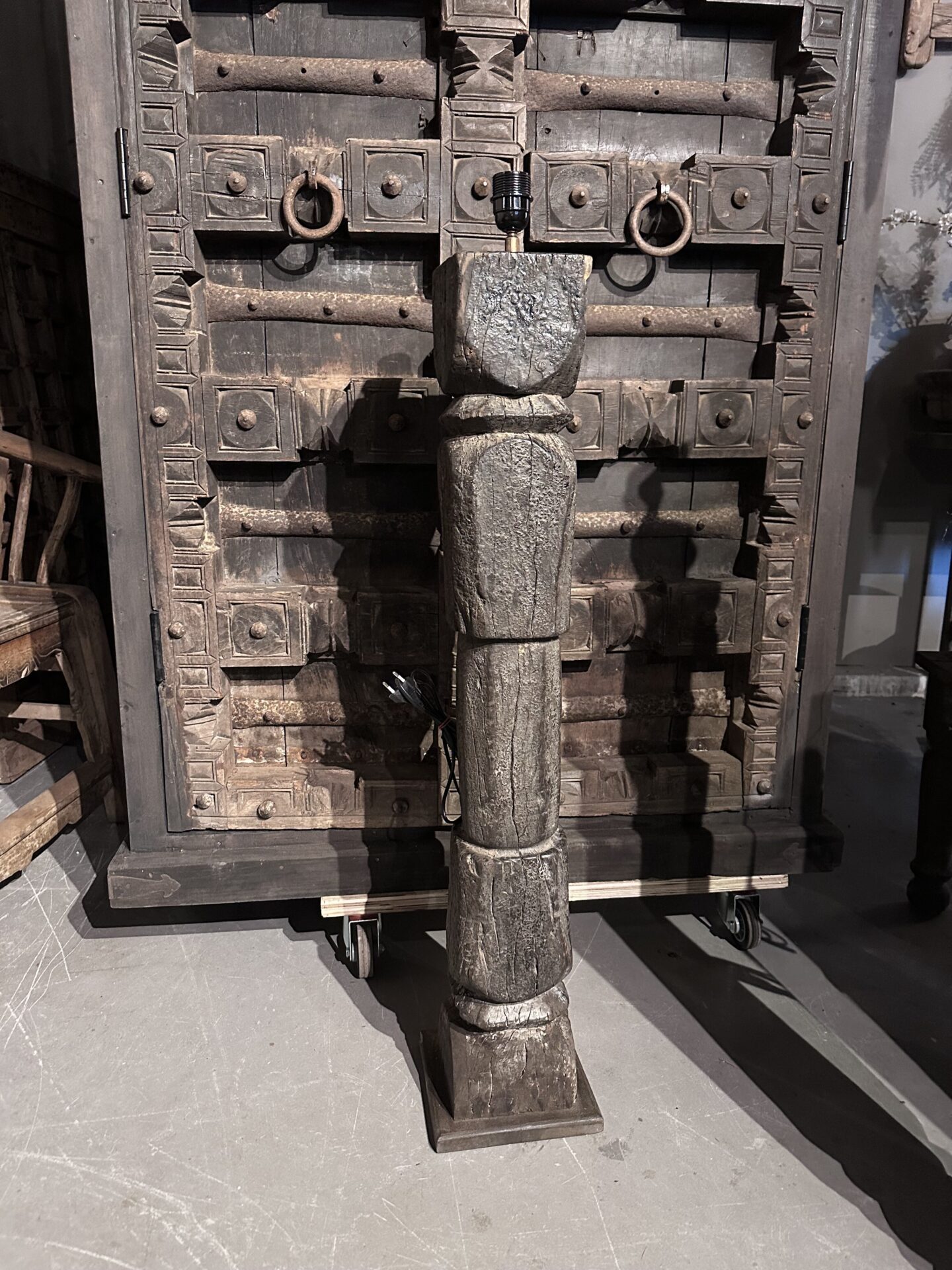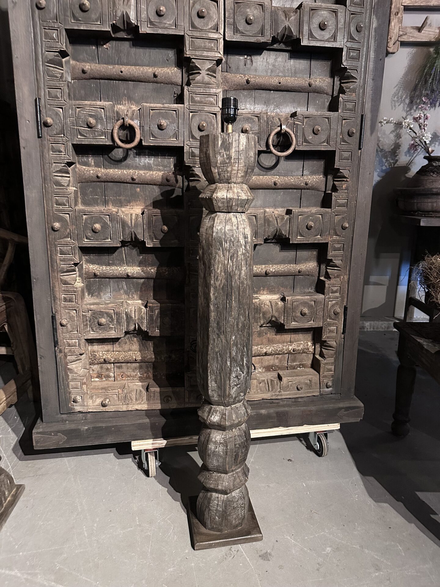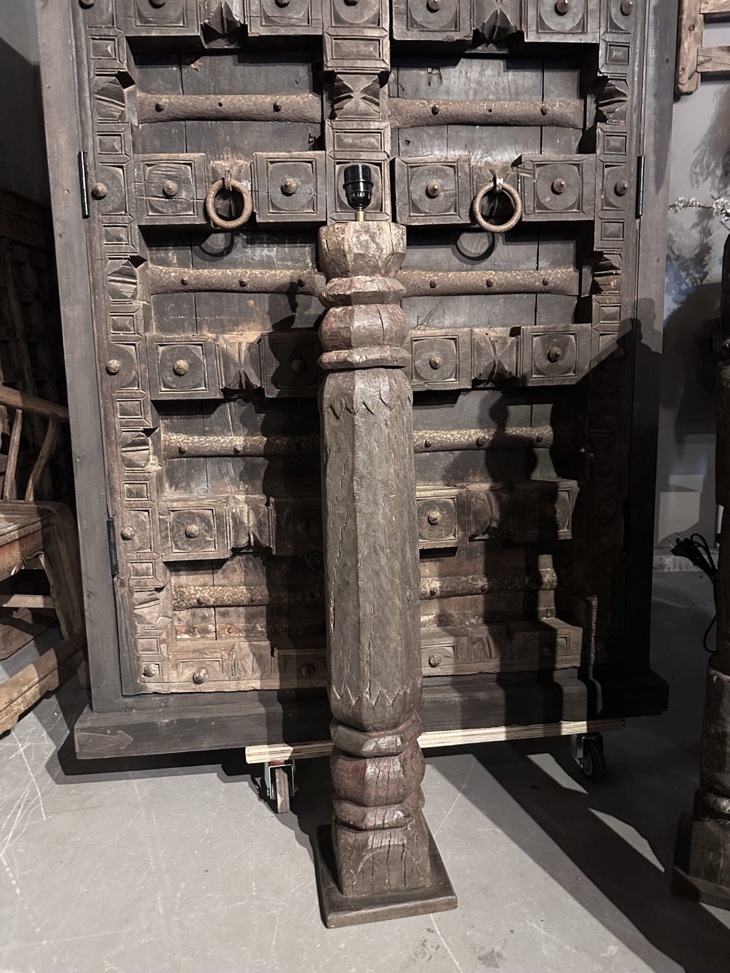 Exclusieve Vloerlamp: Authentieke Oude Pilaar uit IndiaExclusieve Vloerlamp: Authentieke Oude Pilaar uit India