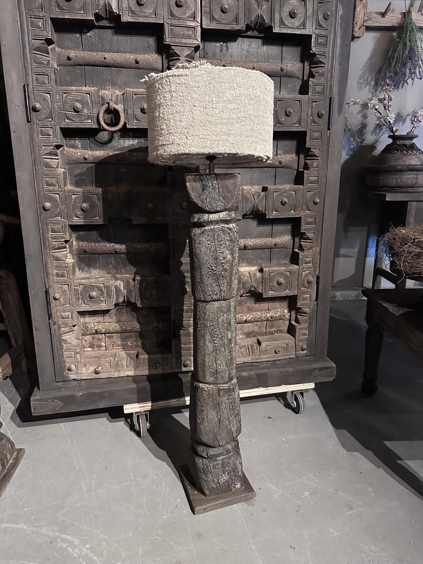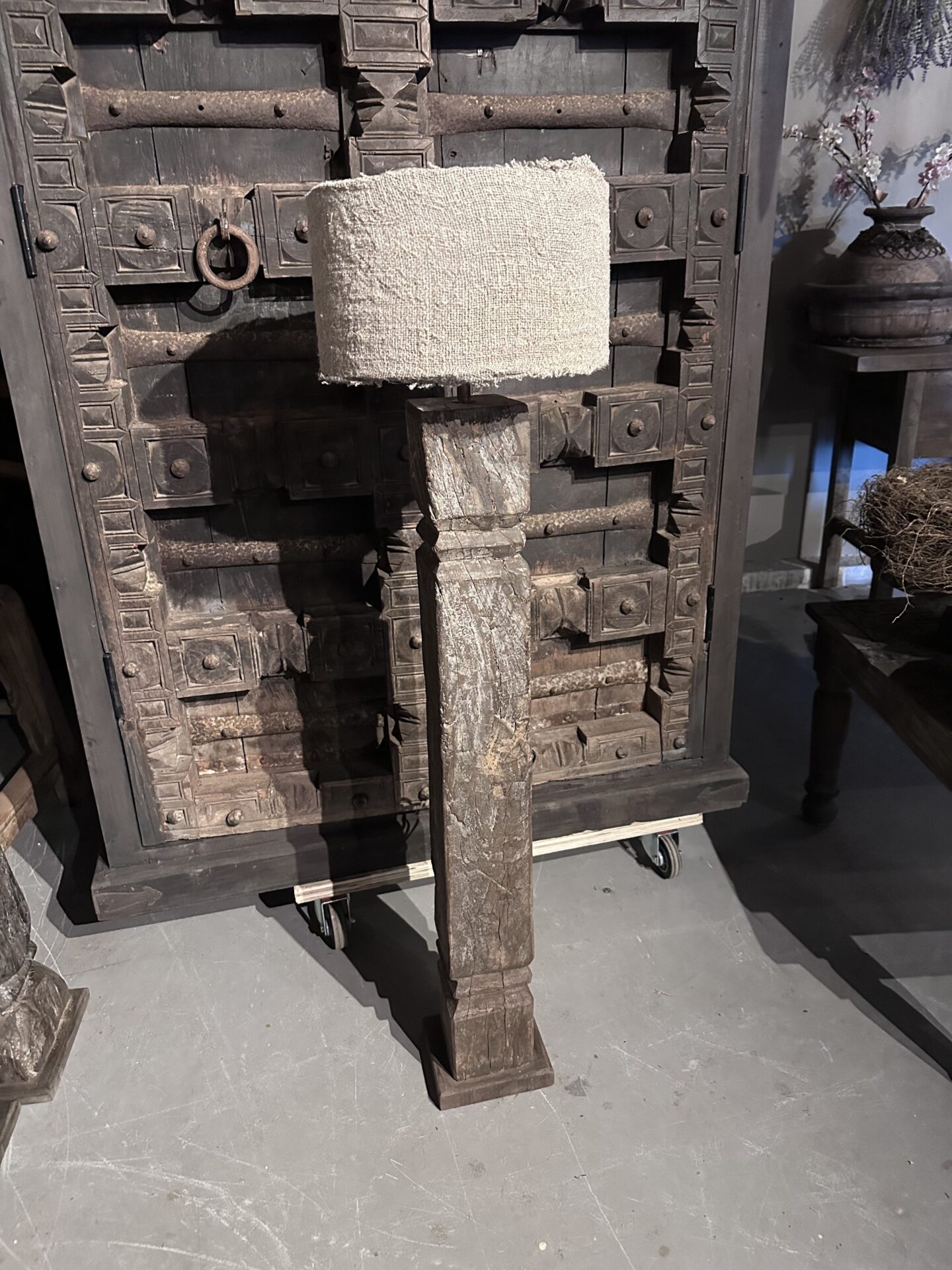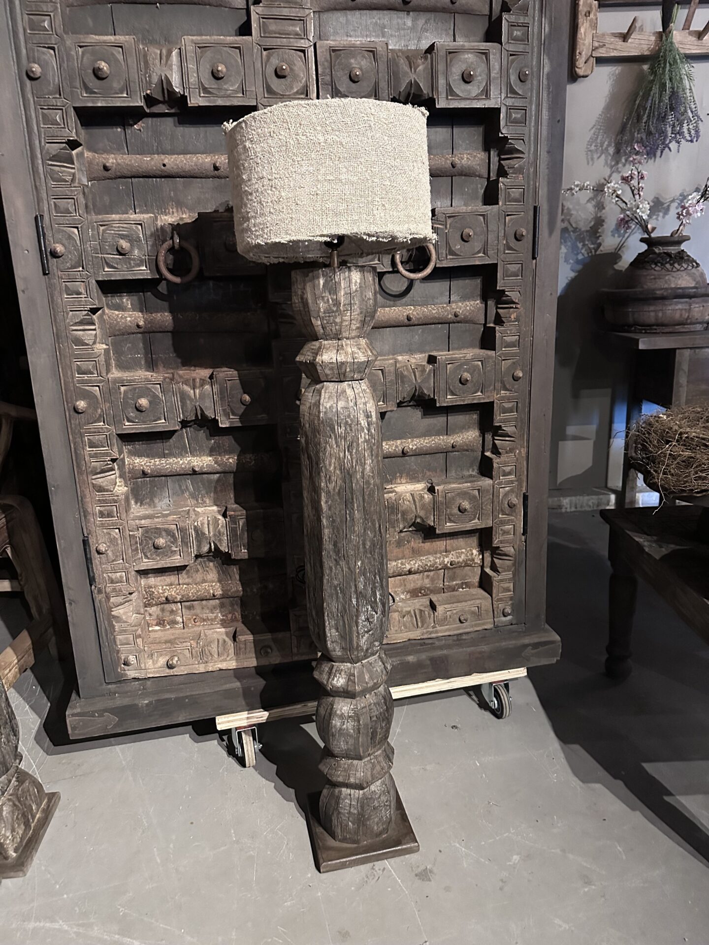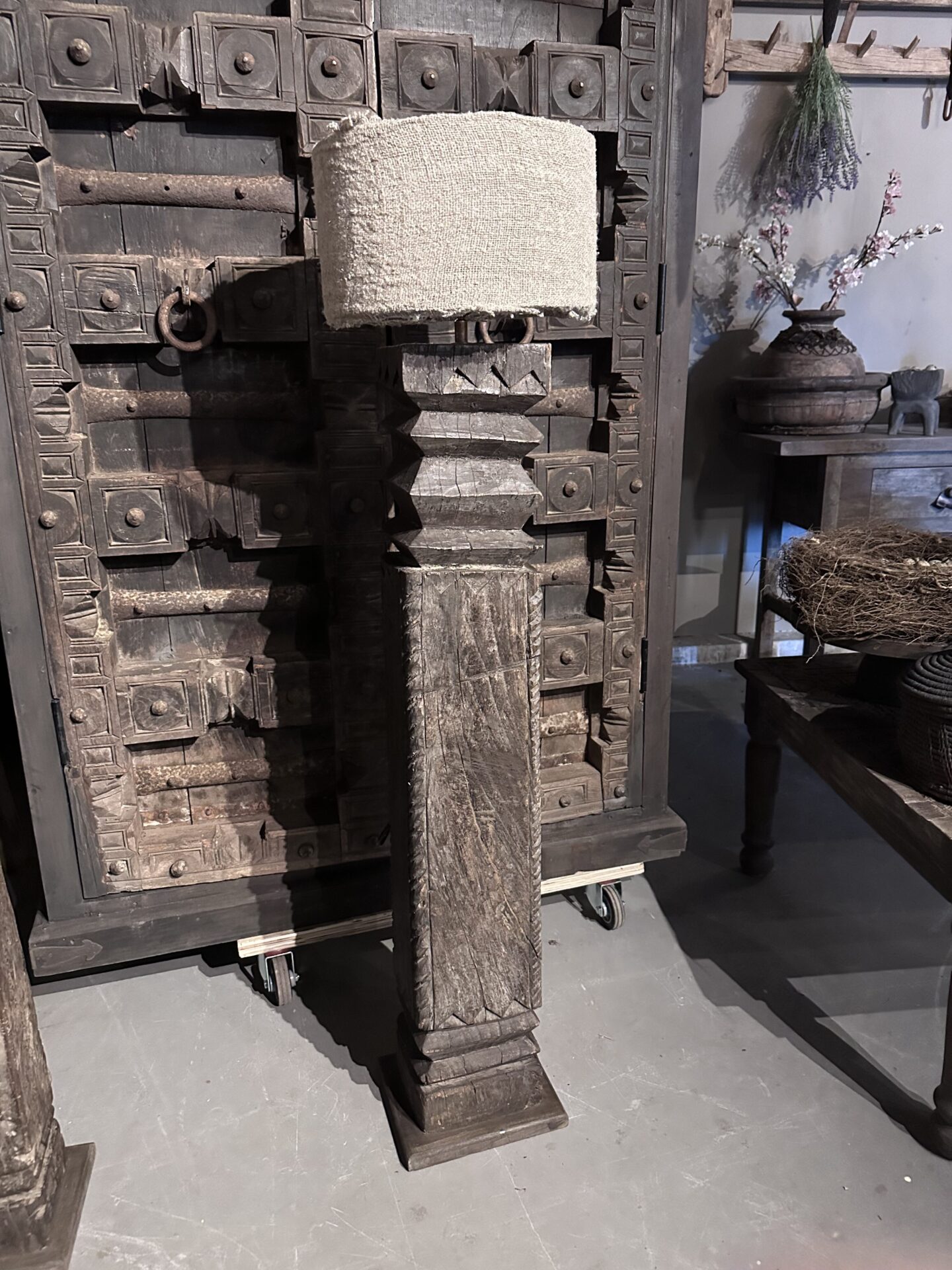 Exclusieve Vloerlamp: Authentieke Oude Pilaar uit India