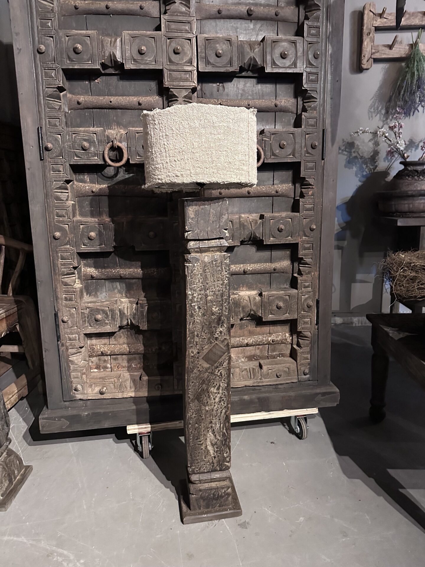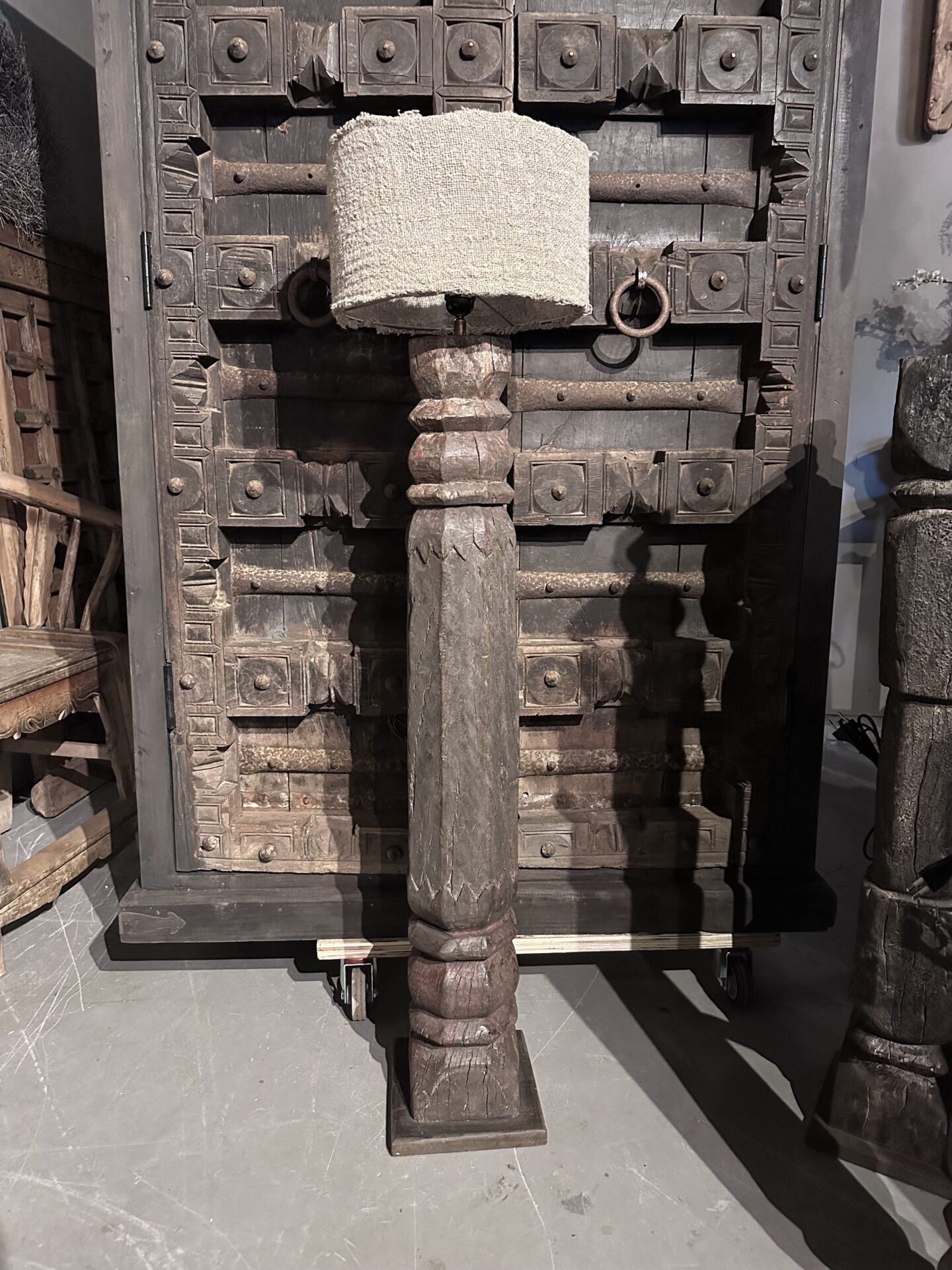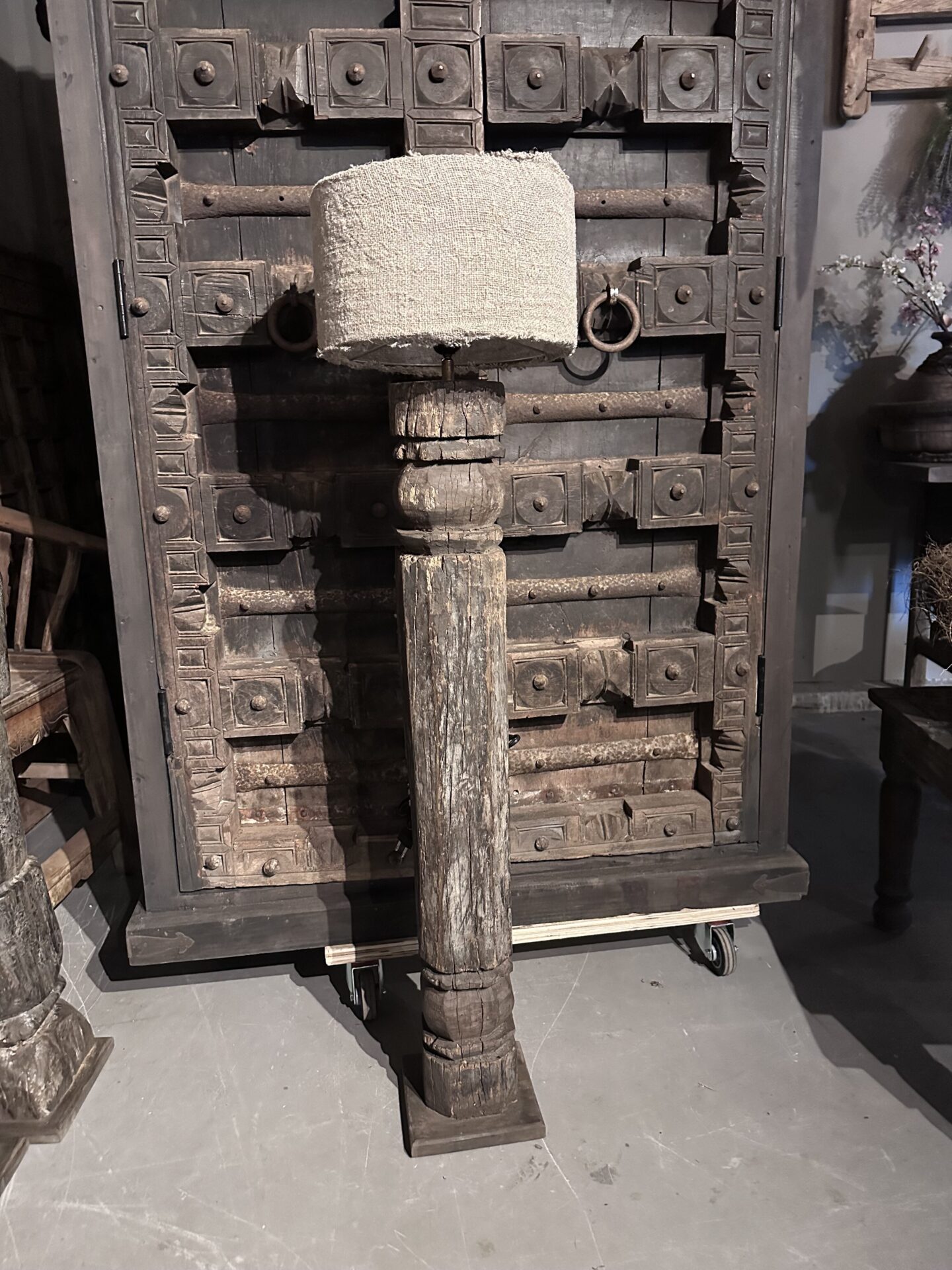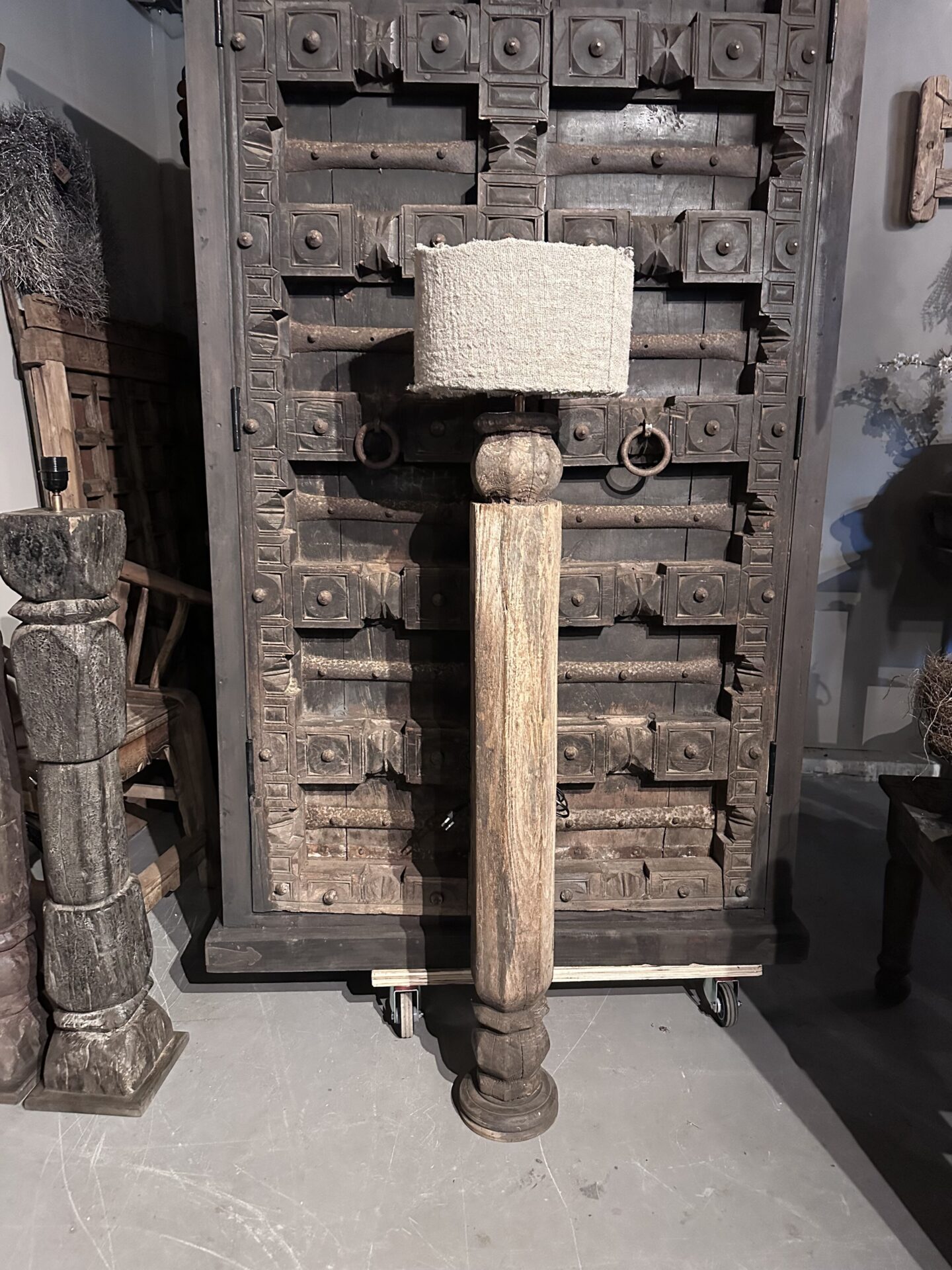 Exclusieve Vloerlamp: Authentieke Oude Pilaar uit India