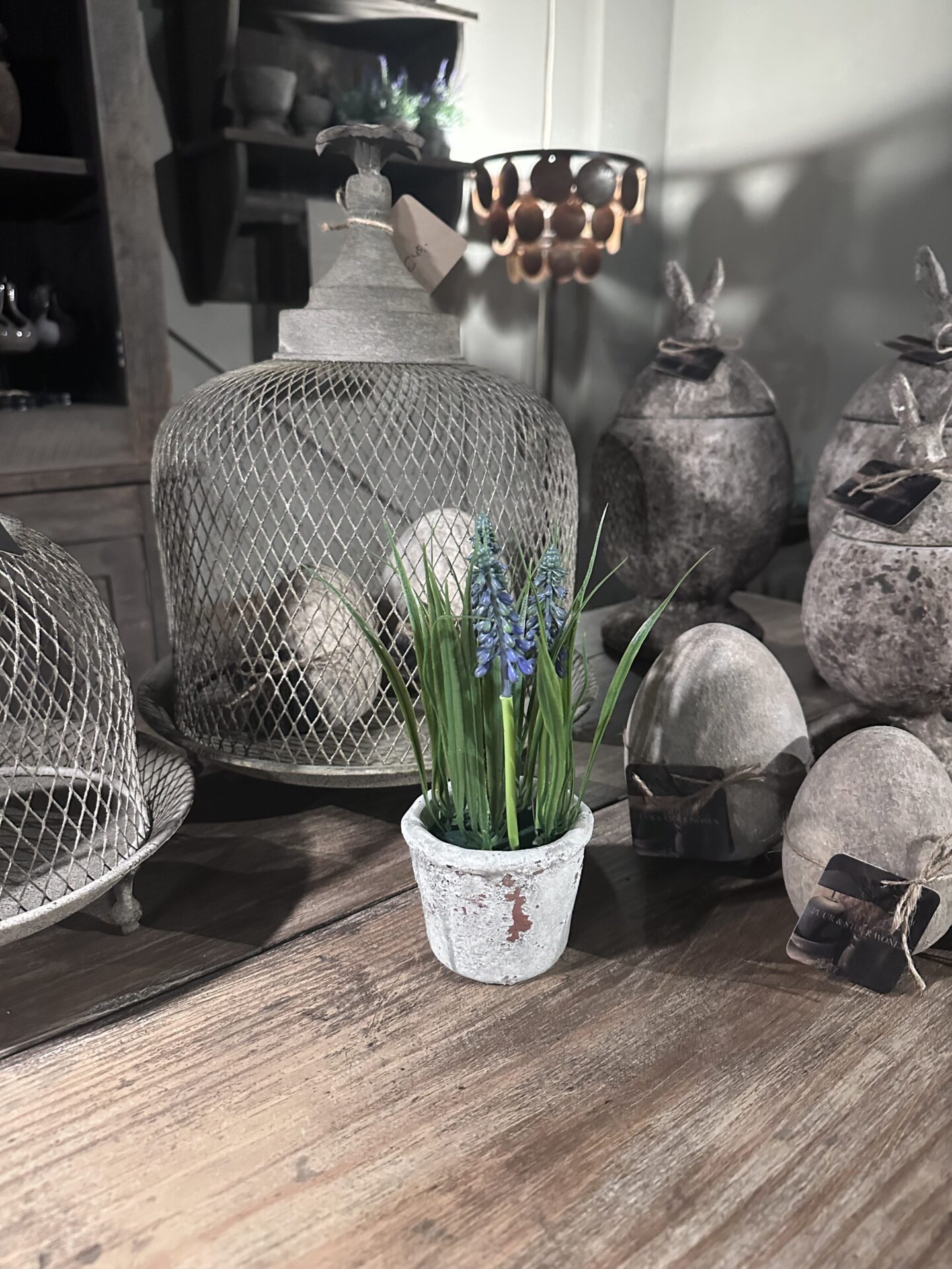 / Kunst blauwe druif in stenen potje