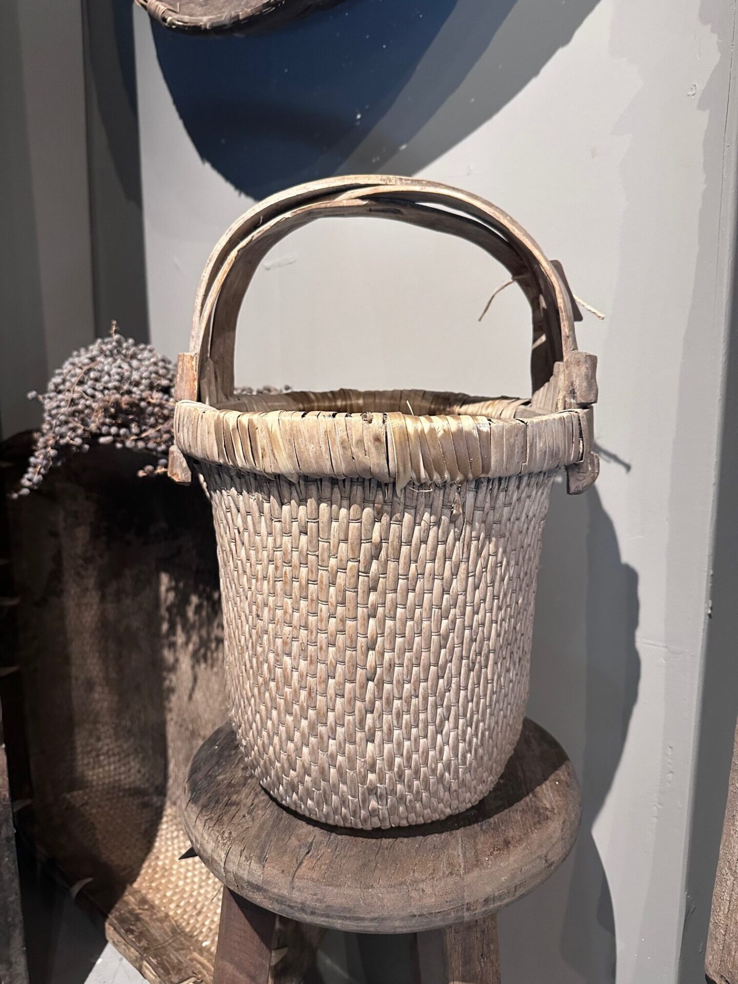 Antieke handgeslagen koperen kan met prachtige patina