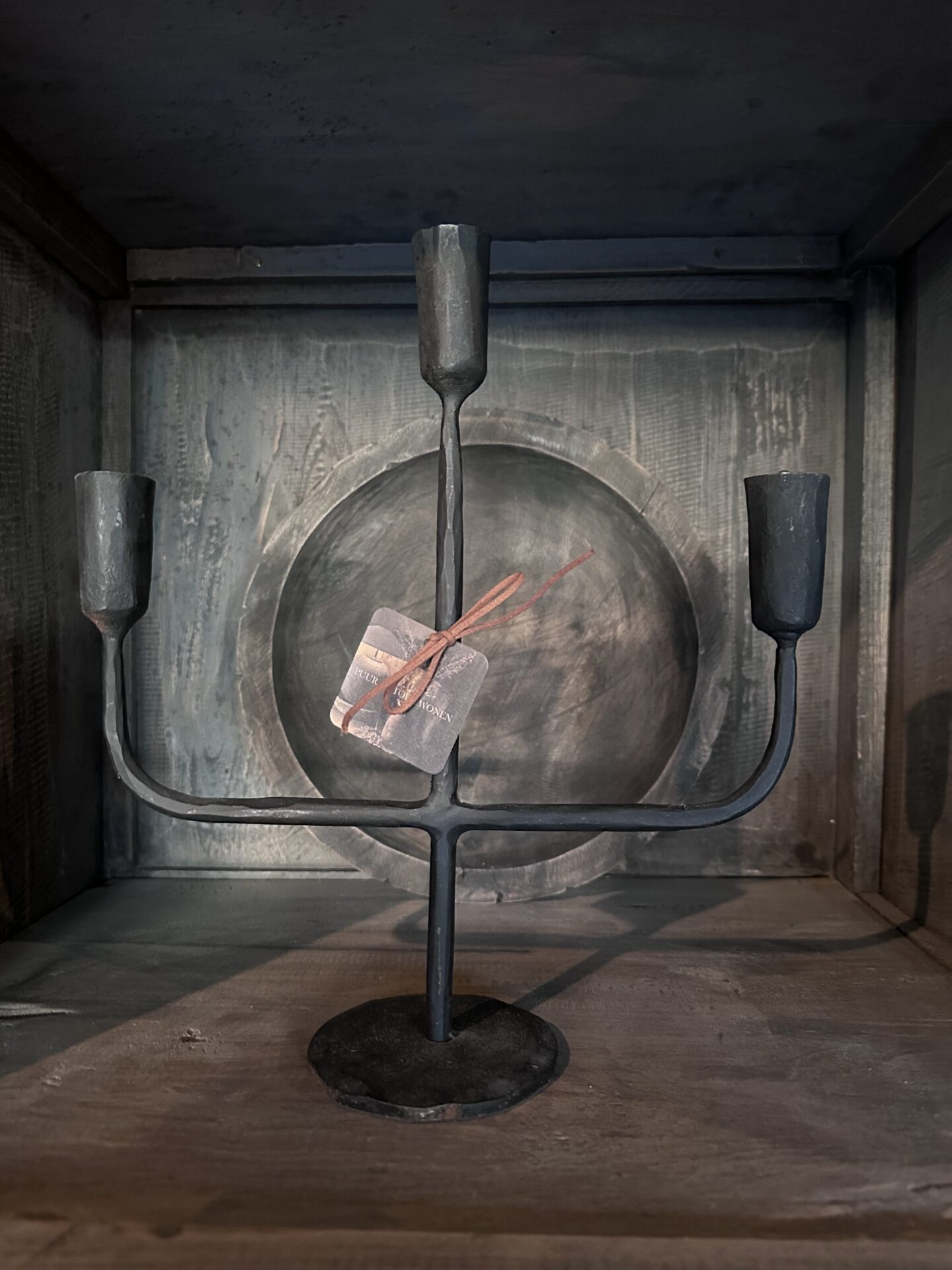 Deze prachtige smeedijzeren kandelaar (28.5×31.5 cm) brengt een rustieke sfeer in huis.