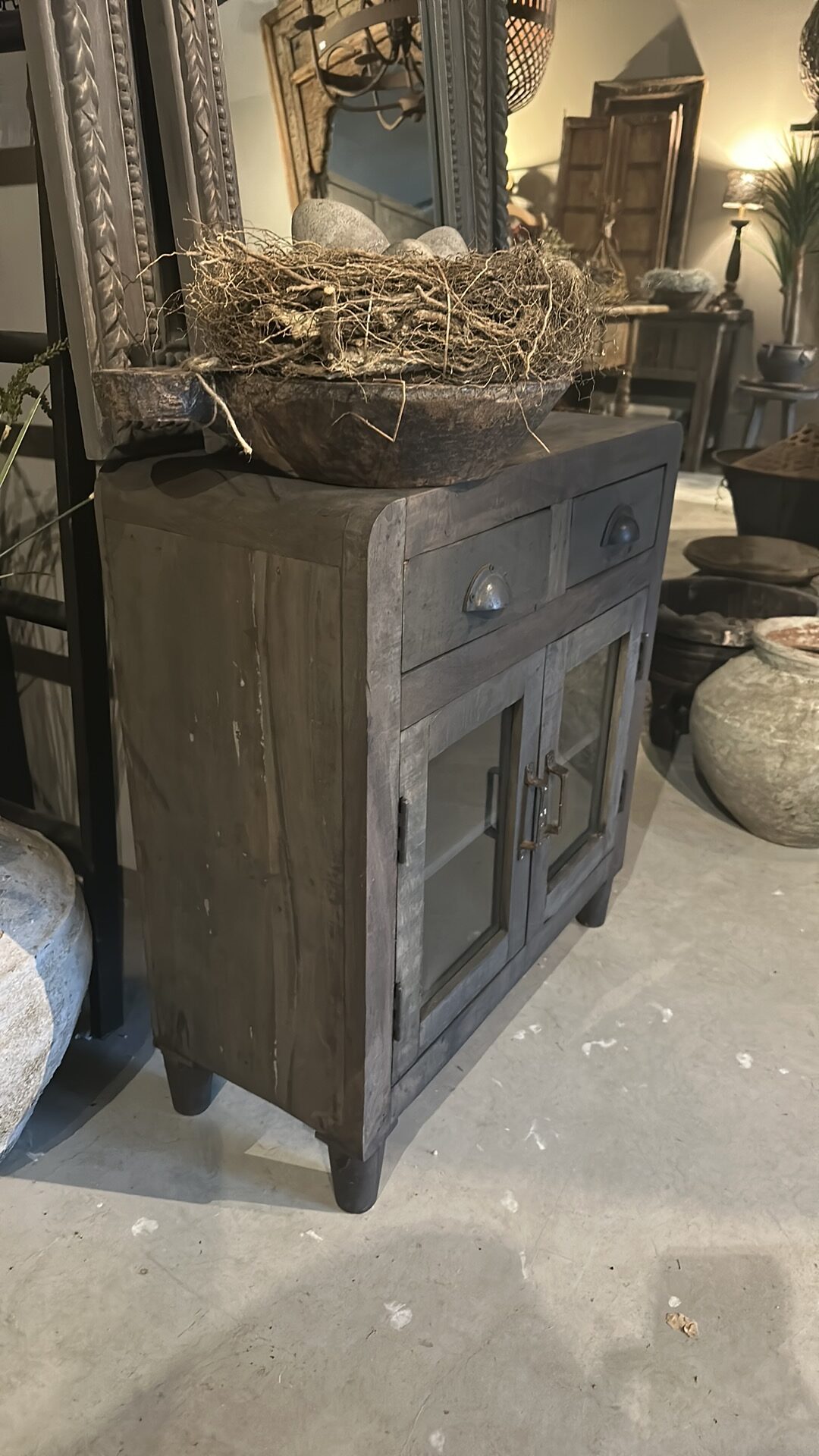 Sober Houten Kastje – Landelijke Vitrinekast met Lades
