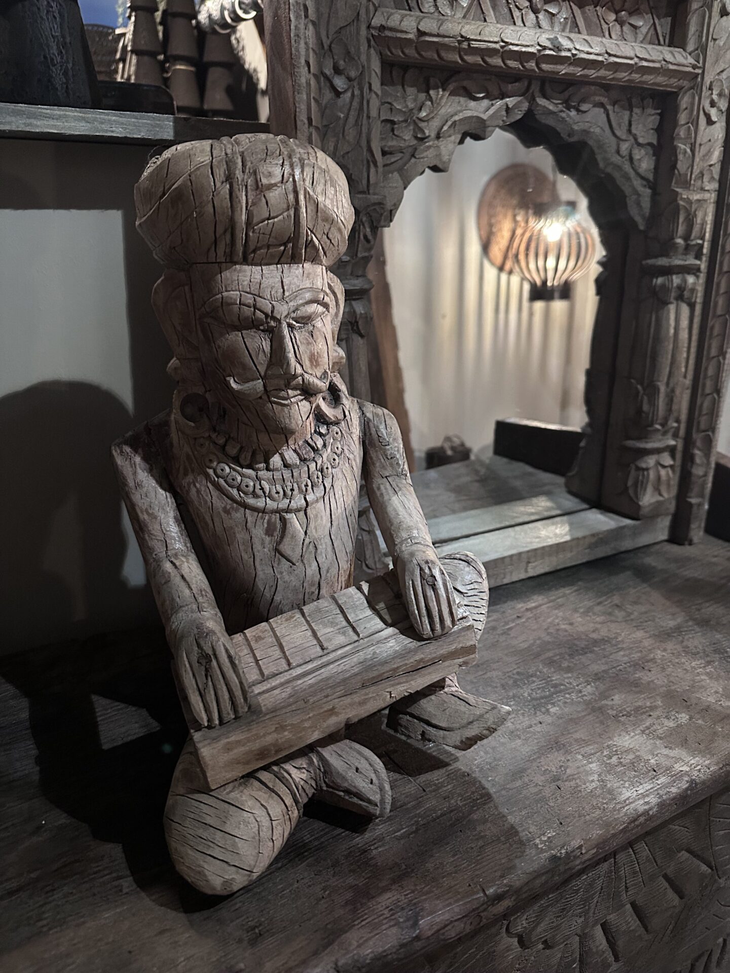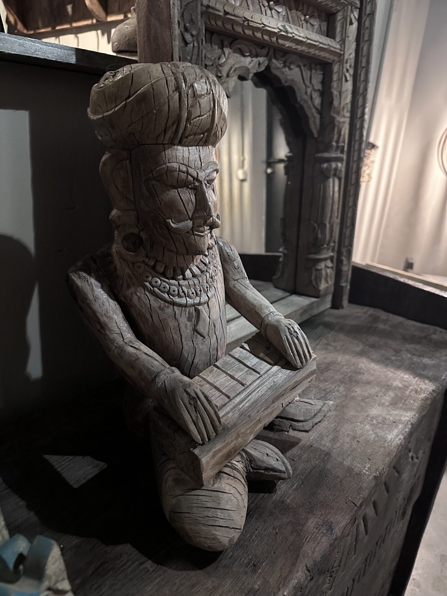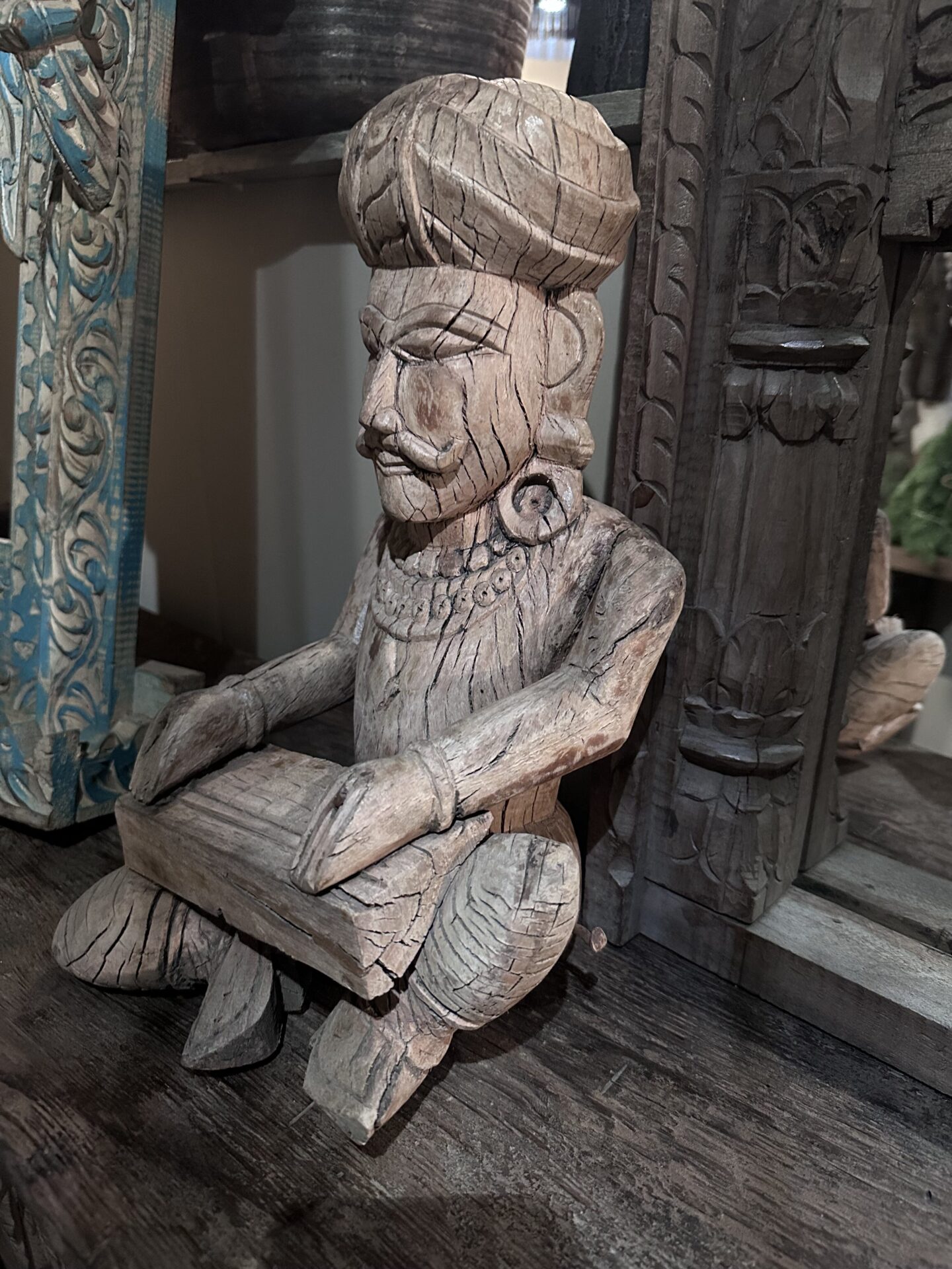 Dit oude sobere houten beeld komt uit India en is 39 cm hoog