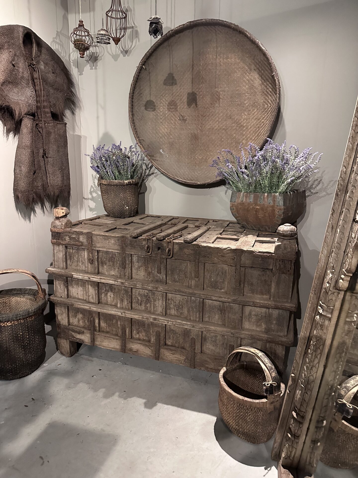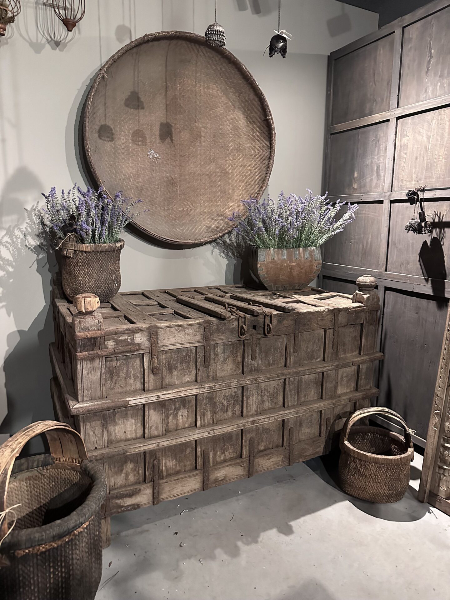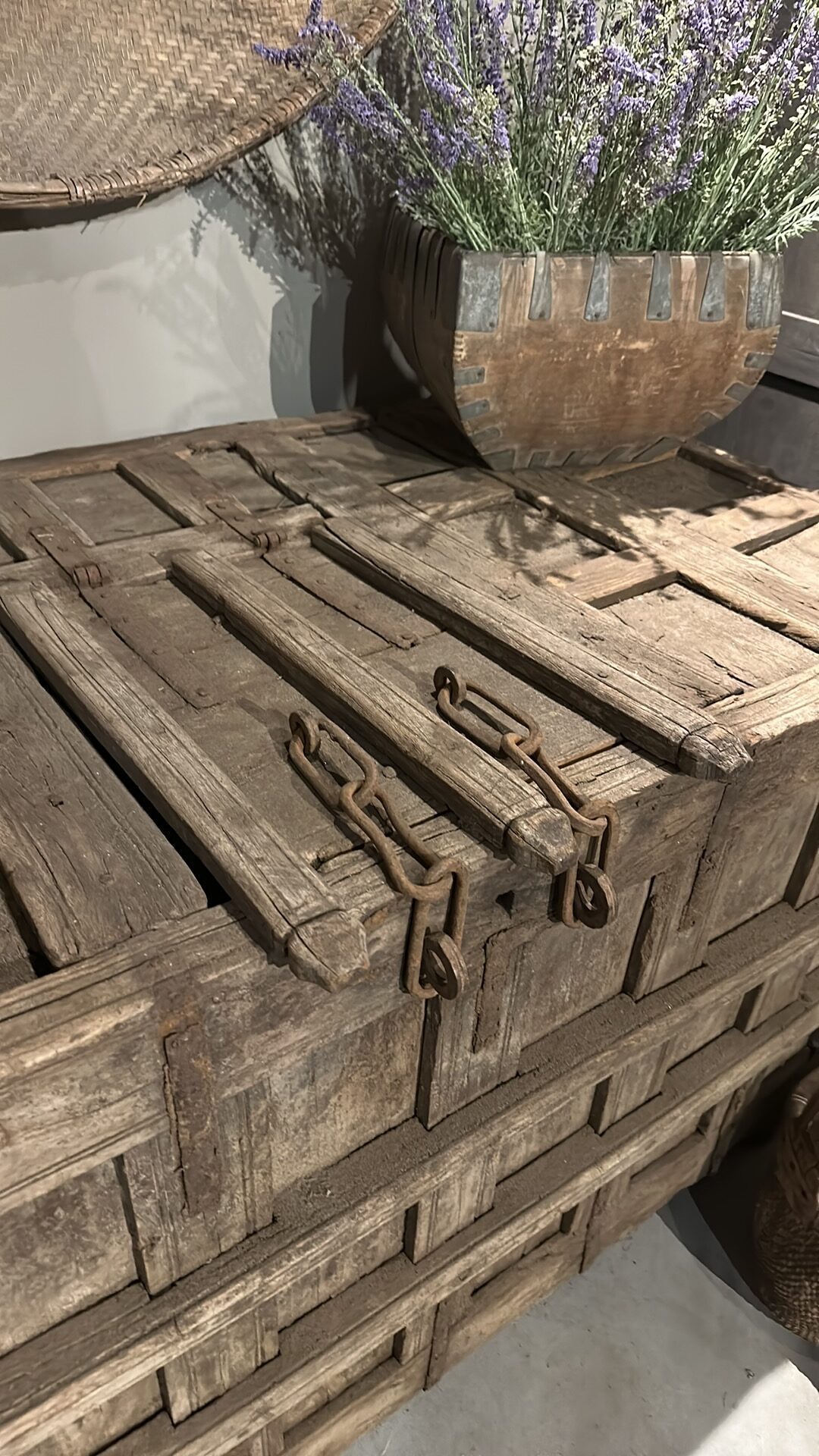 • Materiaal: Massief, verweerd hout met ijzeren beslag